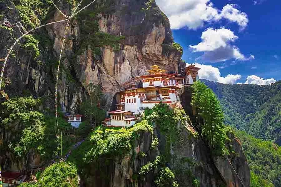 - Tu viện Taktsang (Tiger's Nest) – nằm ở độ cao 3,200m, mờ ảo giữa những đám mây và nằm cheo leo trên vách đá dốc. Paro Taktsang hay còn được gọi là Tu viện Taktsang Palphug, là một trong những tu viện nổi tiếng và linh thiêng nhất tại Tại đây gắn liền với truyền thuyết ngài Liên Hoa Sinh (Padmakāra) cưỡi hỏa hổ - một hiện thân của thần Dorje Drolo và ngồi thiền trong 3 năm 3 tháng 3 tuần 3 ngày 3 giờ tại nơi đây, chính vì vậy tu viện này còn được biết đến với tên gọi khác là Tu viện Tiger's Nest (Hang cọp).